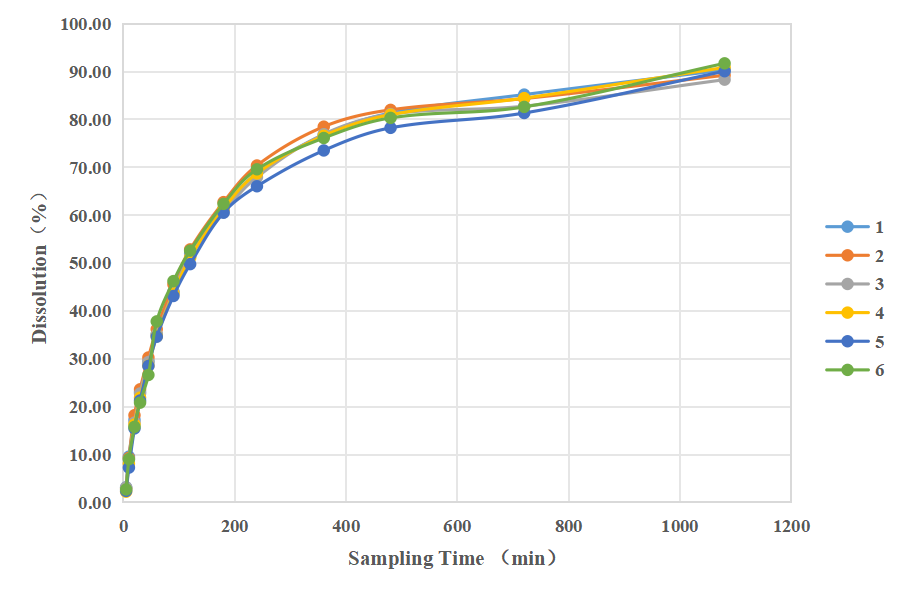 ①Reproducibility: the RSD of this sustained-release tablet ranges from 1.21~3.27%.